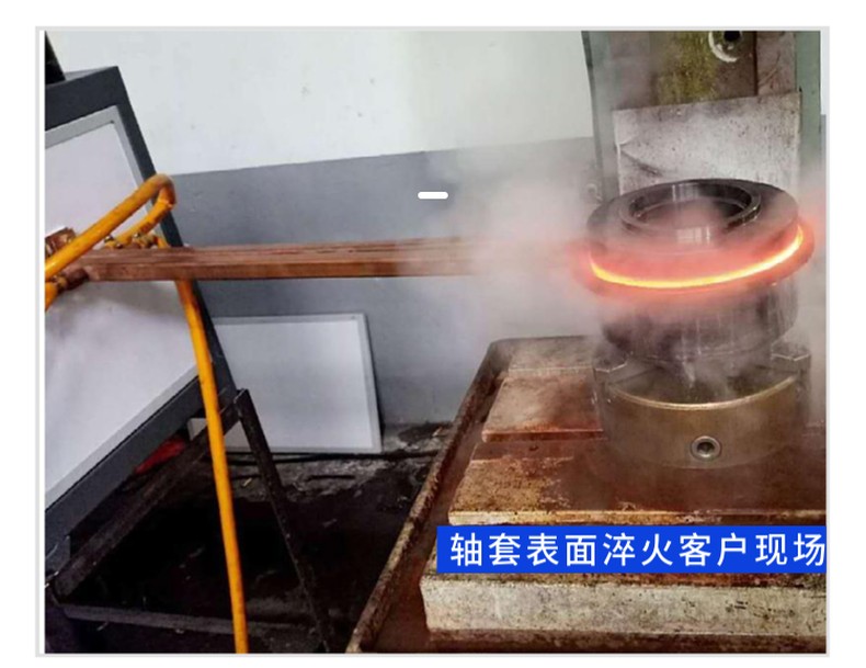 中高頻感應(yīng)淬火設(shè)備 ,可用于軸套熱處理淬火。淬火層深1.5~3mm,淬火硬度均勻。設(shè)備功率選擇120~200kw,淬火工藝旋轉(zhuǎn)加熱,噴液冷卻。